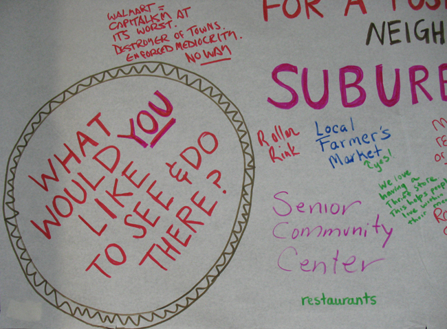We presented the voice of the people in the community: petitions signed by more than 3,000 people against the Walmart proposal and we cited the 500+ Stop Walmart signs that are all over the neighborhoods, as well as our survey with 75 percent of responses opposed to Walmart.